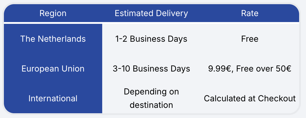 Free shipping to the Netherlands • Delivered in 2-3 business days